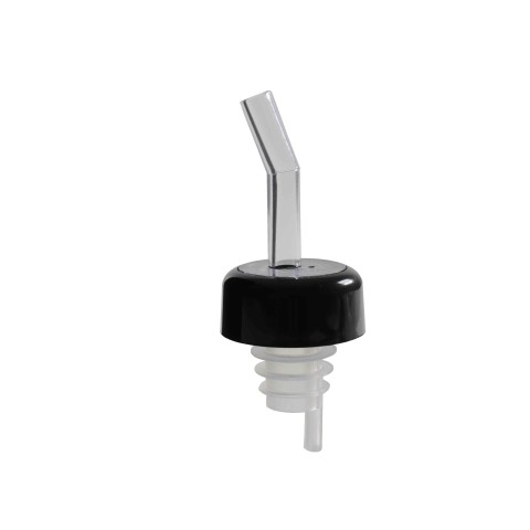 Liquor Pourer, free flow, with black collar, fits standard 750ml liquor bottle, SAN (plastic), clear spout (12 each per pack) (12 packs minimum order)