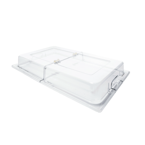 Chafer Dome Cover, rectangular, hinged, dual sided handles, polycarbonate, clear (for full size 8 qt. chafers) (12 each minimum order)