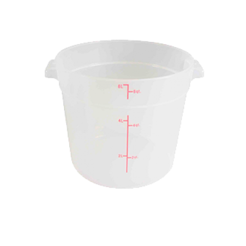 Food Storage Container, 6 quart, round, stain & chemical resistant, -40° to 210° F temperature range, polypropylene, translucent, NSF (12 each minimum order)