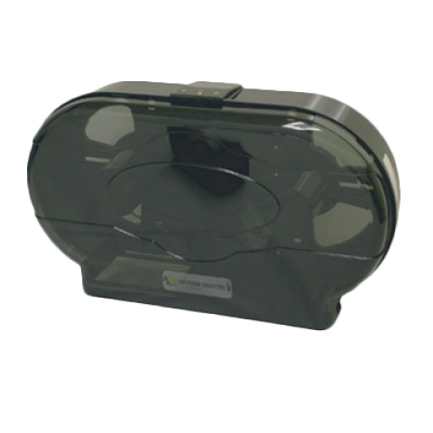 Jumbo Twin Tissue Dispenser, 19" x 5" x 12-1/4", full-swing replaceable cover, key-lock, holds up to (2) 9" dia. rolls, plastic, tranparent
