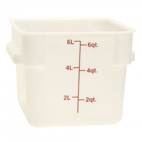 Food Storage Container, 6 quart, square, scratch & break resistant, -40° to 160° F temperature range, polypropylene, white, NSF(6 each minimum order)