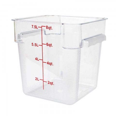 Food Storage Container, 8 quart, square, scratch & break resistant, -40° to 210° F temperature range, polycarbonate, clear, NSF (6 each minimum order)