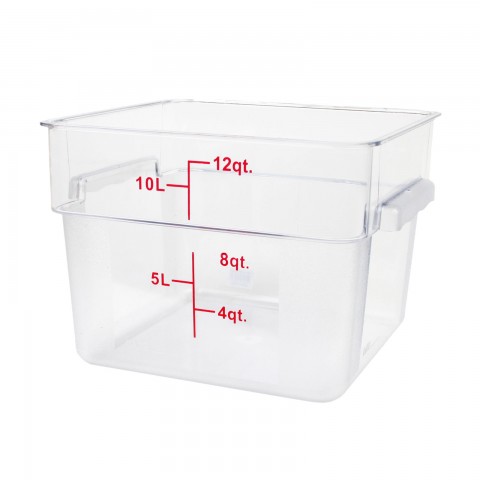 Food Storage Container, 12 quart, square, scratch & break resistant, -40° to 210° F temperature range, polycarbonate, clear, NSF (6 each minimum order)