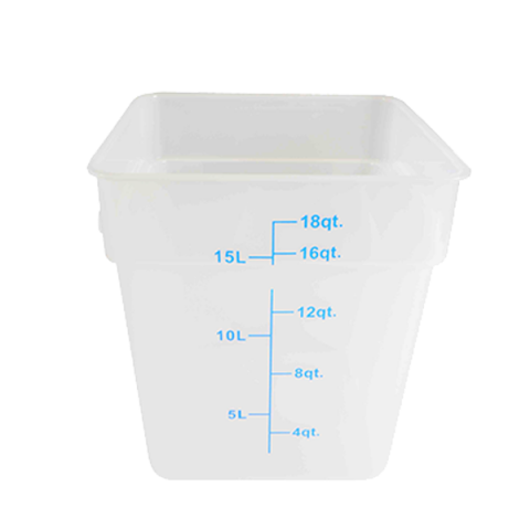Food Storage Container, 18 quart square, stain & chemical resistant, -40° to 160° F temperature range, polypropylene, translucent, NSF (6 each minimum order)