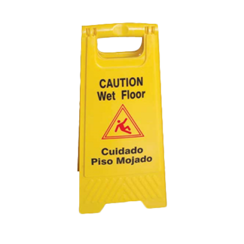 Safety Floor Sign, "Caution/Wet Floor", 24" tall x 12" wide, fold-up, dual-sided, plastic, yellow