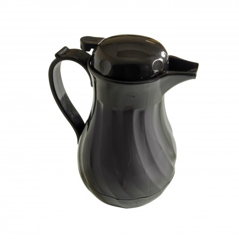 Beverage Server, 1.24 liter (42 oz.), double wall insulated, push button lid, swirl design, break-resistant, dishwasher safe, polycarbonate & polypropylene, black (1 set minimum order)