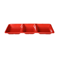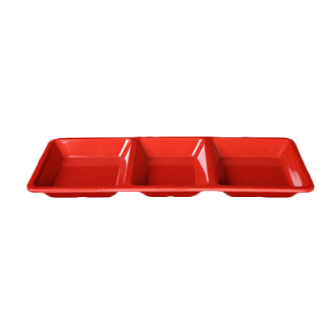 Compartment Plate, 3-wells, 28 oz., 15" x 6-1/4" x 1-3/8", rectangular, break-resistant, dishwasher safe, BPA free, melamine, Passion Red, NSF (6 each minimum order)
