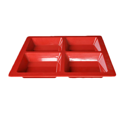 Compartment Plate, 4-wells, 60 oz., 13-1/2" x 13-1/2" x 1-3/8", square, break-resistant, dishwasher safe, BPA free, melamine, Passion Red, NSF (6 each minimum order)