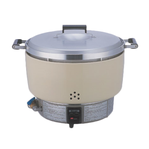Rice Cooker, LP gas, 55 cup uncooked rice capacity, 23" x 18-1/2" x 17-3/4", automatic simmers, Piezo pilot ignition, accurate and dependable thermostat, flame failure safety device, durable handle, built-in regulator, enamel outer casing with aluminum cook pot, 1/2" NPT female, 34,000 BTU, Rinnai®, NSF, CSA Star