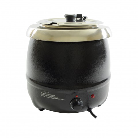 Soup Warmer, 10-1/2 quart, 13-9/16" x 13-1/4" x 13-3/4"H, round, adjustable temp control, stainless steel inner pot, aluminum, black, 120v/60/1-ph, 3.3 amp, 400 watt, ETL-Sanitation, cETLus