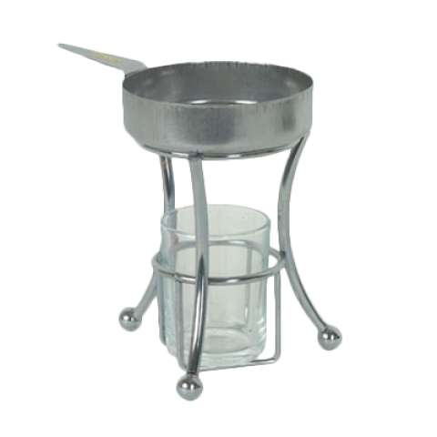 Butter Melter, 3 piece set, 4.8 oz. rim full, includes: base, warmer pan with handle & glass flame holder, stainless steel