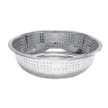Chinese Colander, 13" dia., round, perforated, 2 mm holes, rimmed, stainless steel. mirror finish