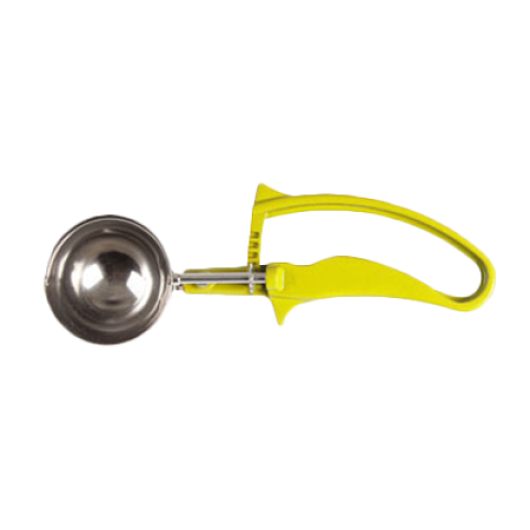 Disher, size-20, 1-5/8 oz., round bowl, blade extends beyond bowl, one-piece color-coded EZ Grip handle, low moisture absorption, 18/8 stainless steel, yellow, NSF