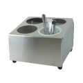 Flatware Cylinder Holder, 4 hole, countertop, rolled edges, stainless steel