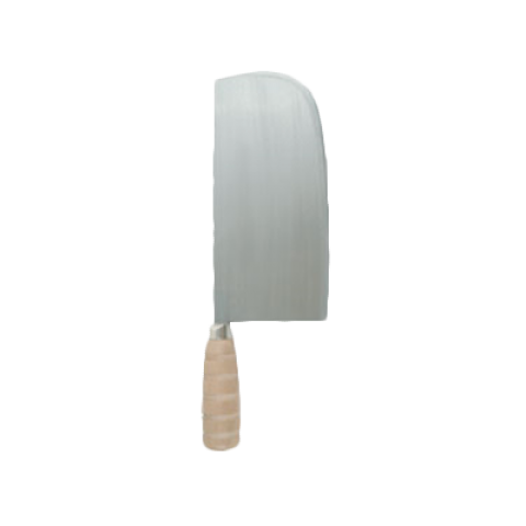 Wan Woo Knife, 9" length x 4-1/2" width blade, round head, wood handle, cast iron