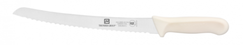 Bread knife, 9-1/2" blade, white polypropylene handles, German steel, NSF