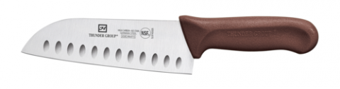 Santoku Knife, 7" Blade, hollow ground, brown polypropylene handles, German steel, NSF