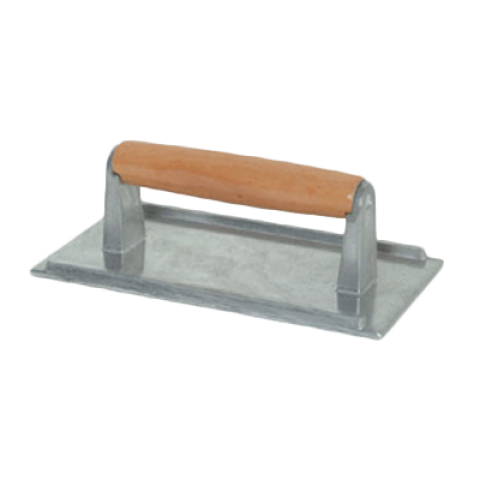 Steak weight, 4-1/4" x 8-1/4", wood handle, heat resistant ribbed bottom, aluminum, smooth