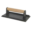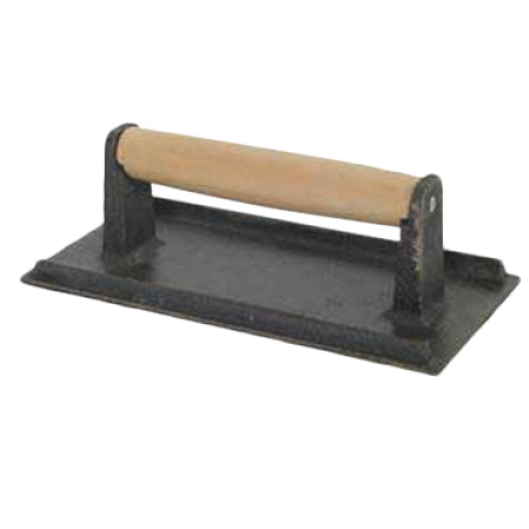 Steak weight, 5" x 9", wood handle, heat resistant ribbed bottom, cast iron, black