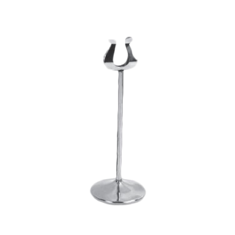 Table Card Stand, 8" tall, harp style, with weighted base, stainless steel