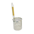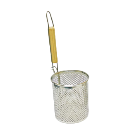 Noodle Skimmer, 5-3/8" x 6", mesh wire, round, deep pocket with flat bottom, built in hook hanger, wood handle, stainless steel