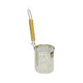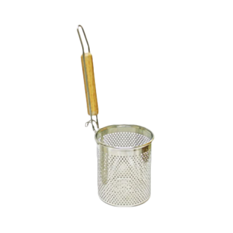 Noodle Skimmer, 4-7/8" x 5-1/2", mesh wire, round, deep pocket with flat bottom, built in hook hanger, wood handle, stainless steel