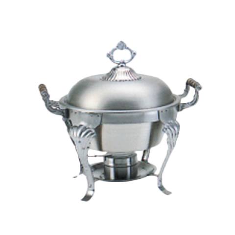 Deluxe Chafer, 5 quart, half-size round, lift-off dome cover, wood handles, stainless steel, mirror-finish