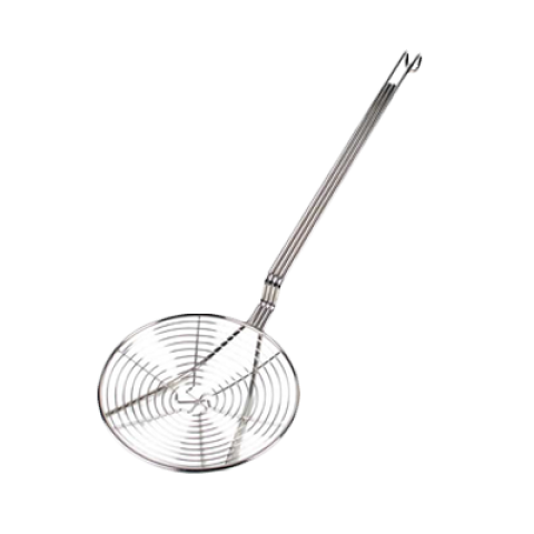 Skimmer, 7" dia., 20" OA length, round, spiral wire, hooked handle, nickel plated (12 each minimum order)
