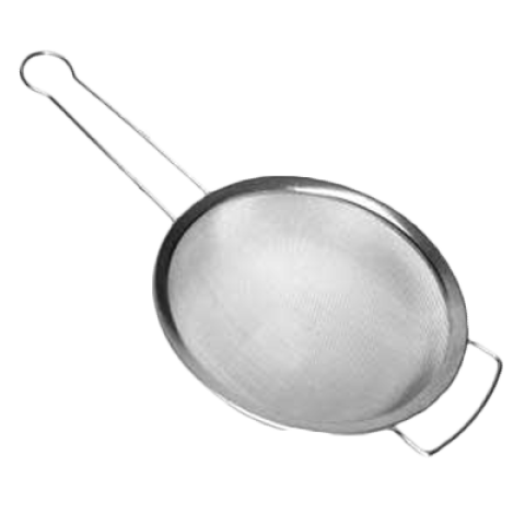 Strainer, 8" dia., single mesh, support handle, stainless steel (12 each minimum order)