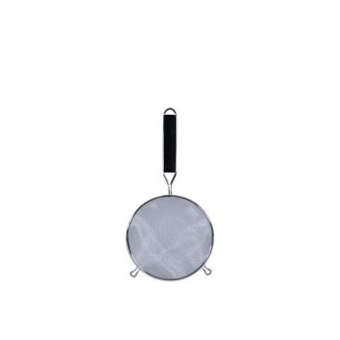 Strainer, 6" dia. double medium mesh, black plastic handle, stainless steel (12 each minimum order)