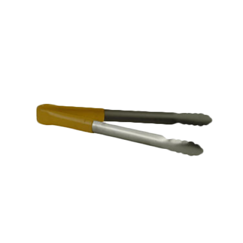 Utility Tongs, 16" L, one-piece, non-slip, color coded handle, heavy duty, stainless steel, yellow (12 each minimum order)
