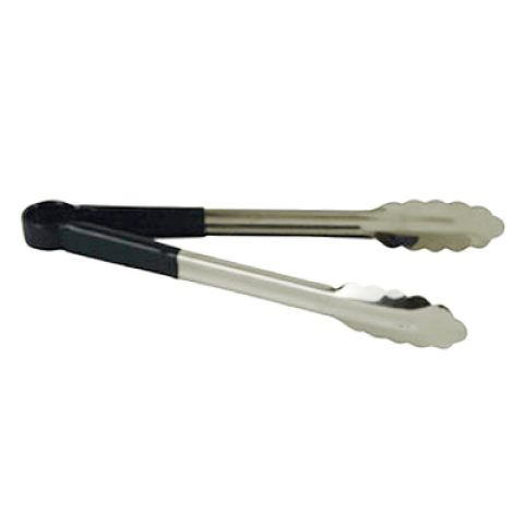 Utility Tongs, 12" L, one-piece, non-slip, color coded handle, stainless steel, black (12 each minimum order)