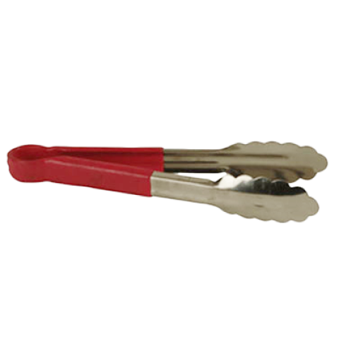 Utility Tongs, 12" L, one-piece, non-slip, color coded handle, stainless steel, red (12 each minimum order)