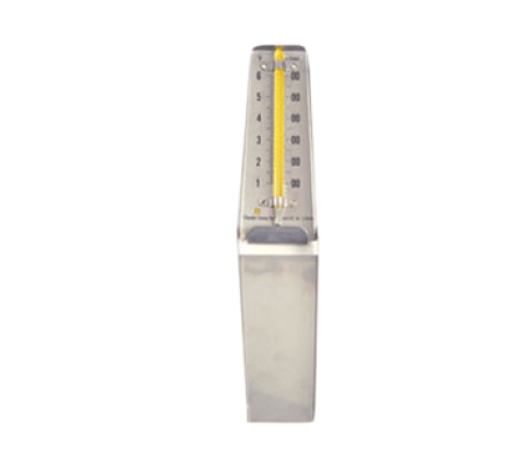 Oven Thermometer, mercury filled glass tube, 100° to 600° F temperature range, +/- 1° accuracy, fold-up cover which doubles as a stand, stainless steel (12 each minimum order) (item may be prohibited in certain U.S. states)