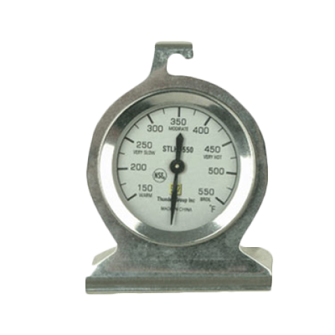 Oven Thermometer, dial display, 150° to 550° F temperature range, +/- 1° accuracy, hangs or stands, stainless steel, NSF (12 each minimum order)