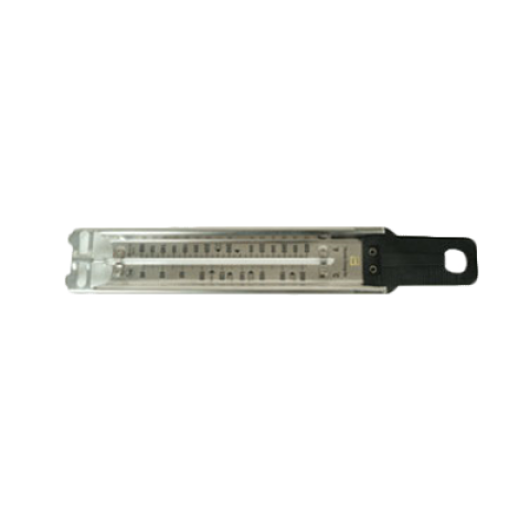 Deep Fry/Candy Thermometer, mercury filled glass tube, 100° to 400° F temperature range, +/- 1° F accuracy, dual scale reads Fahrenheit & Celsius, dishwasher safe, heat resistant handle, stainless steel (12 each minimum order) (item may be prohibited in certain U.S. states)