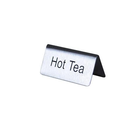 Table Tent Sign, "Hot Tea", 3"L x 1-1/2"H, stainless steel (24 each minimum order)