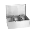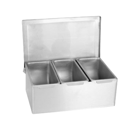 Bar Condiment Dispenser, countertop design, 3-compartment, open bottom, 18/8 stainless steel