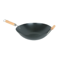 Wok, 14" dia., non-stick, hanging loop, wooden handle and helper handle, carbon steel
