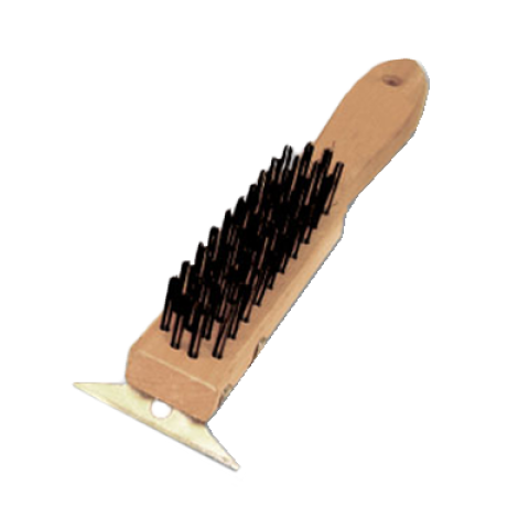 Wire Brush, with scraper, 11"L, heavy-duty, wood handle, wire bristles (12 each minimum order)