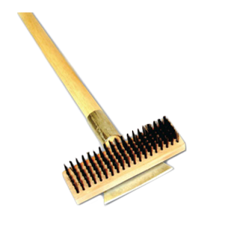 Wire Brush, with scraper, 27"L, heavy-duty, long wood handle, wire bristles