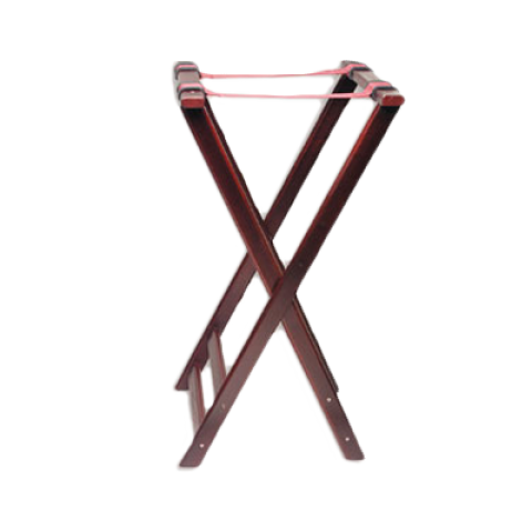 Tray Stand, folding, double bar, 2 nylon straps, wood, mahogany finish