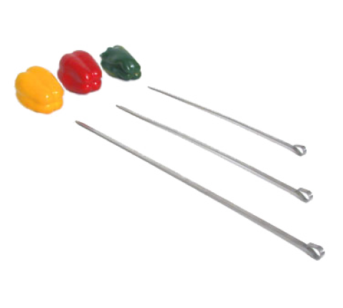 Kabob Skewers, 18"L, 1/4"W, one end pointed, one end with ring, 18-8 stainless steel, dozen