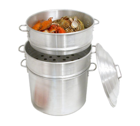 Clam Steamer Set, 16" dia, 7/8" perforations, includes: (2) steamers, (1) 12" deep water pan & (1) cover, aluminum