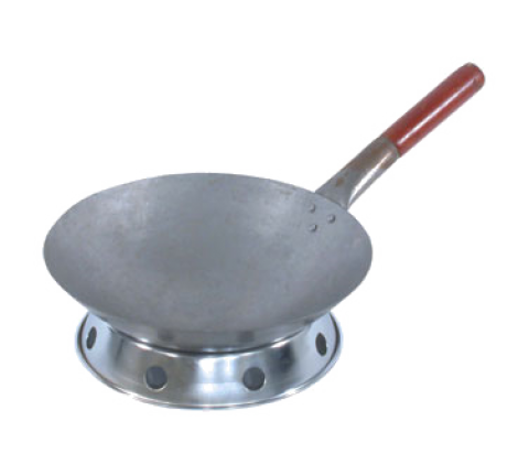 Mandarin Wok, 14", steel construction with 8-1/2" riveted steel handle with wood extension