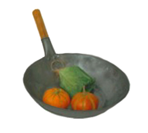 Flat-Bottom Wok, 14", Mandarin style, steel construction with wood/steel riveted handle