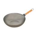 Mandarin Wok Pan, 11-1/2" dia., flat bottom, bamboo handle, steel construction