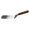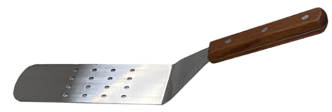 Extra-Long, Wooden Handle Grill and Griddle Spatula. Blade Length: 10” Overall Length: 20” Width: 3”