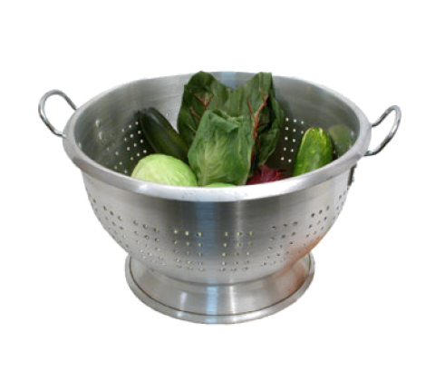 Colander, 24 quart capacity, heavy duty aluminum, large riveted handles, footed base, dozen