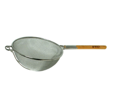 Strainer, 14" dia. bowl, double mesh, coarse & fine, 17-1/2" lacquered wood handle, 18/8 stainless steel (contact factory for availability and price)
